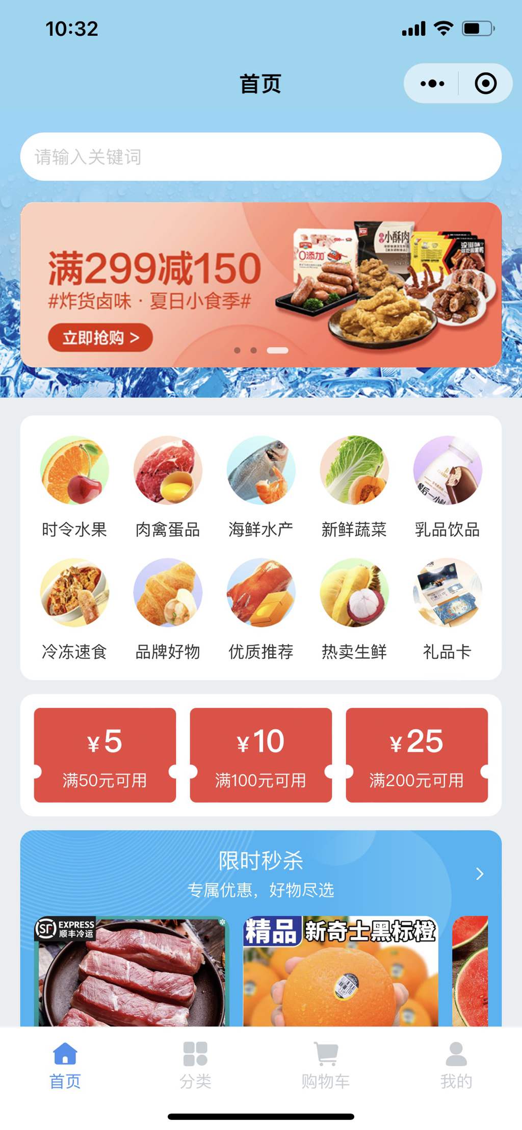 支持果蔬、肉类、水产、粮油、零食等全品类生鲜食品管理,适配生鲜效期、产地、规格管理,支持生鲜溯源、新鲜度标注,打造专业生鲜购物商城。