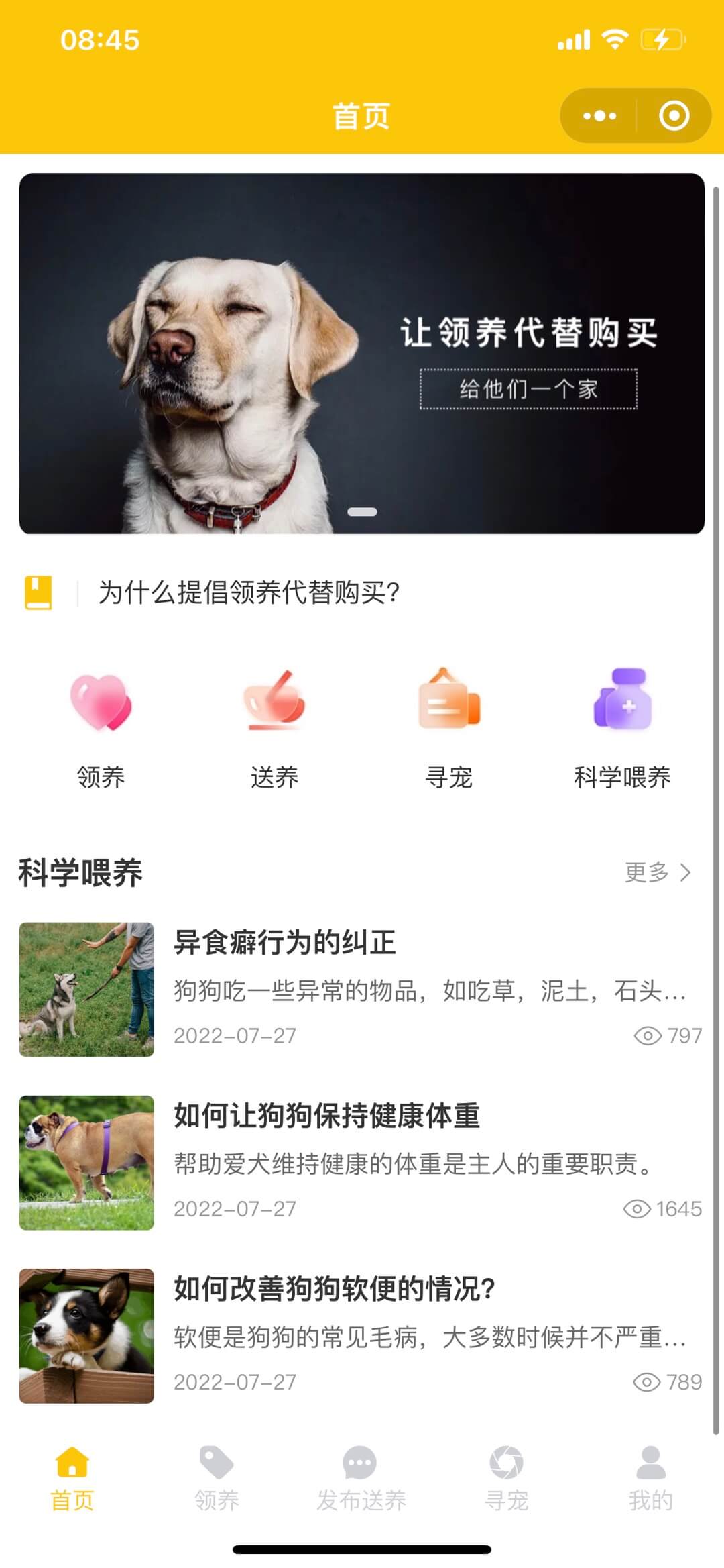 提供宠物饲养、防疫、洗护、训练等科普资讯,支持图文、视频形式,打造宠物知识分享中心,提升领养人的饲养能力与宠物保护意识。