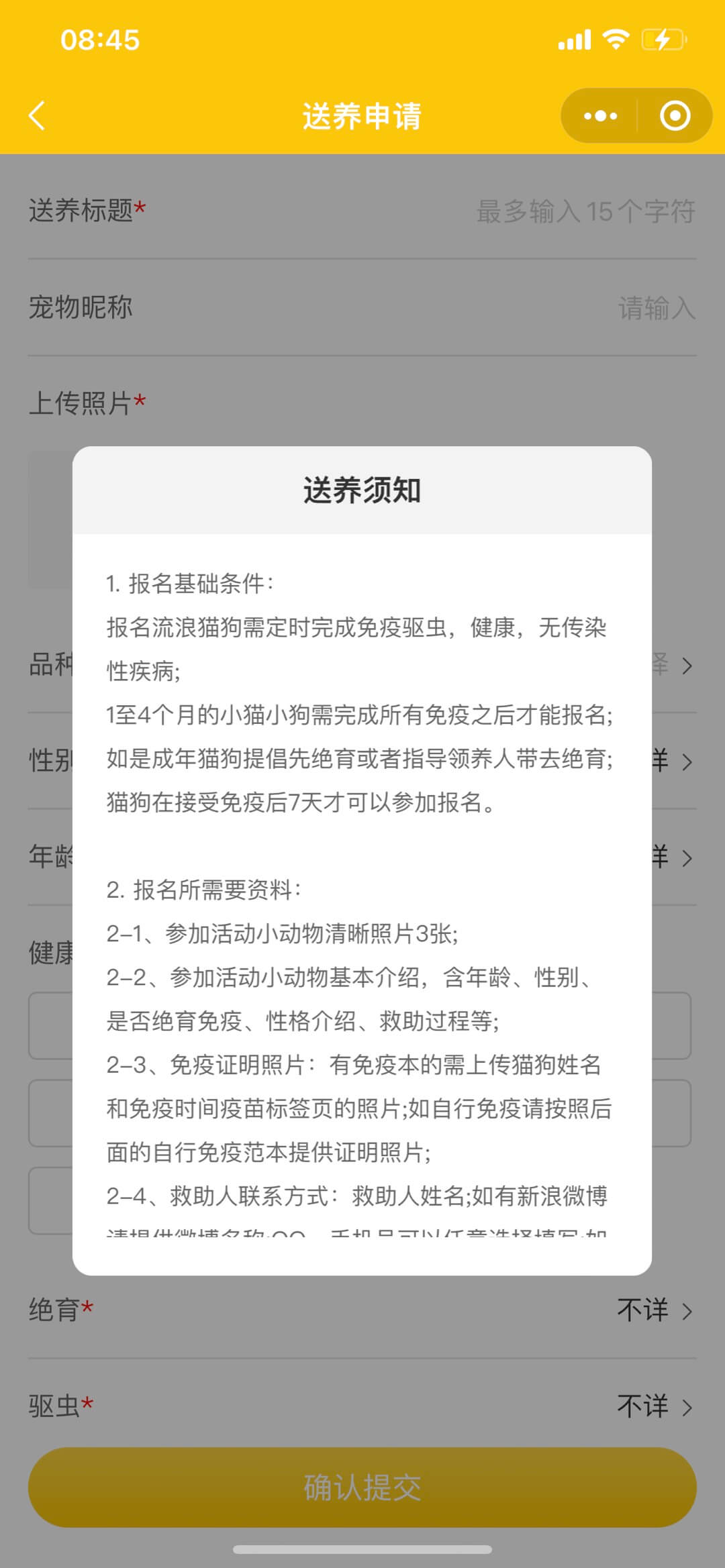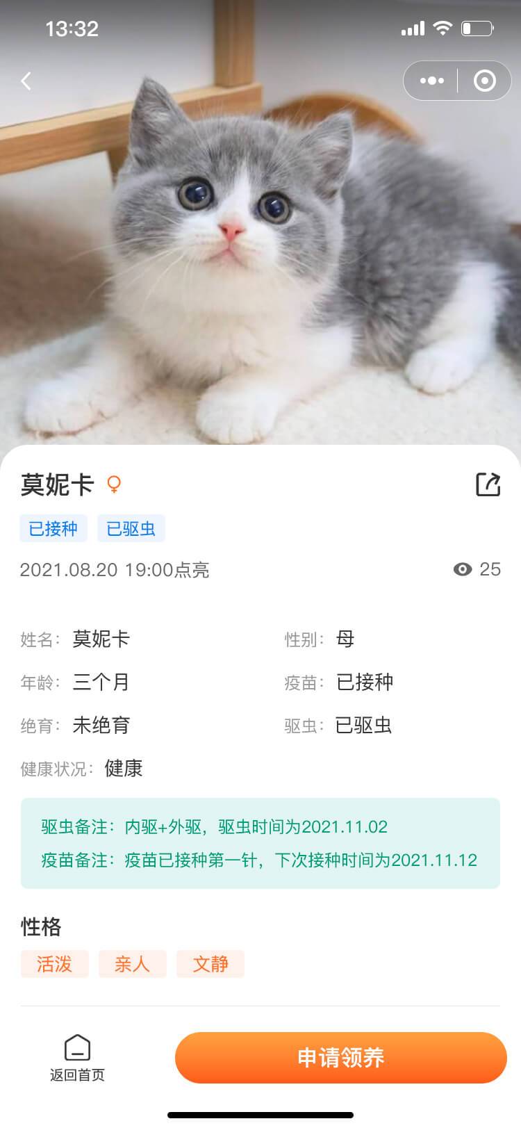打造标准化领养流程,支持领养申请、资料审核、线下见面、领养确认、后续回访,实现领养全流程管控,保障宠物领养后的生活质量。