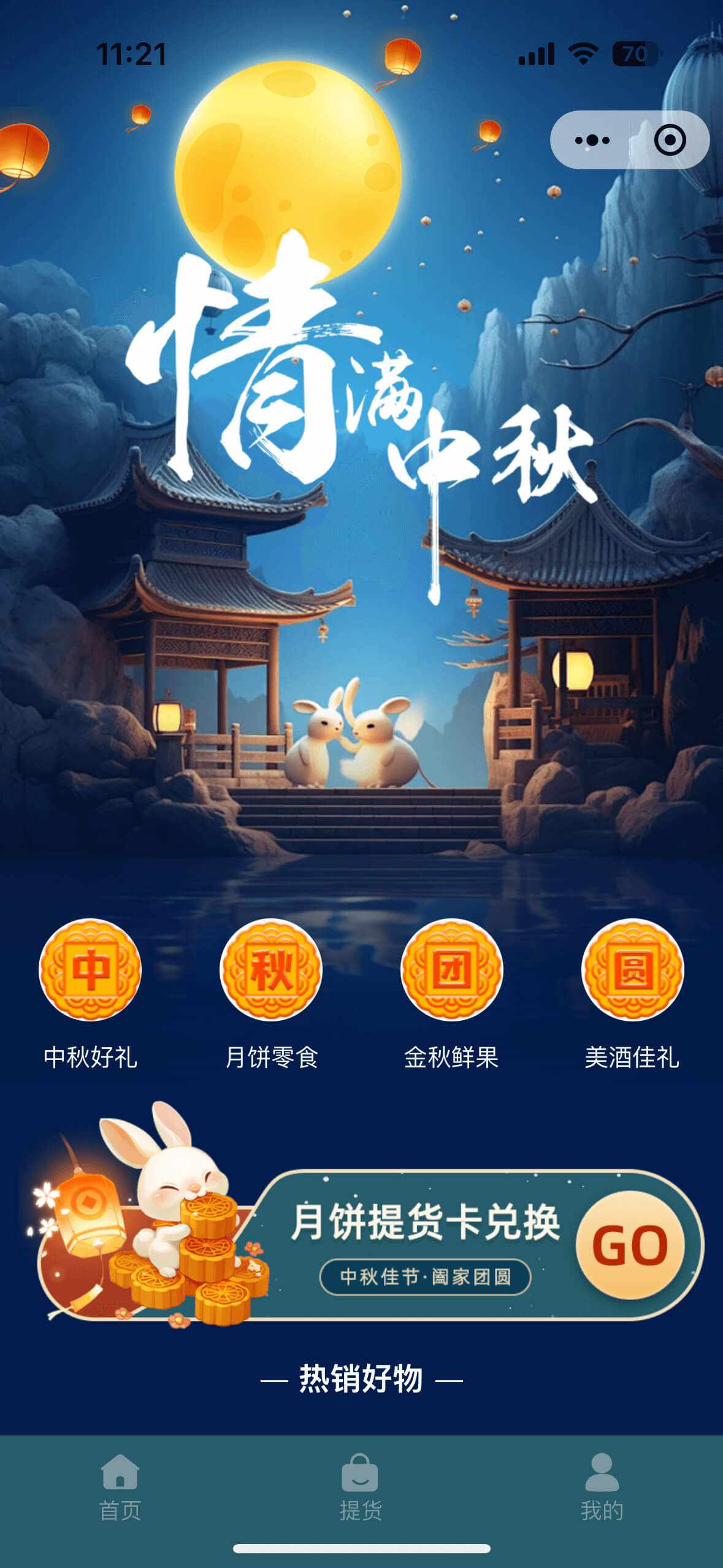 提供月饼礼盒、提货卡线上预售,支持礼盒规格、价格、提货时间选择,适配团购、企业采购、个人购买,实现月饼中秋预售的数字化运营。