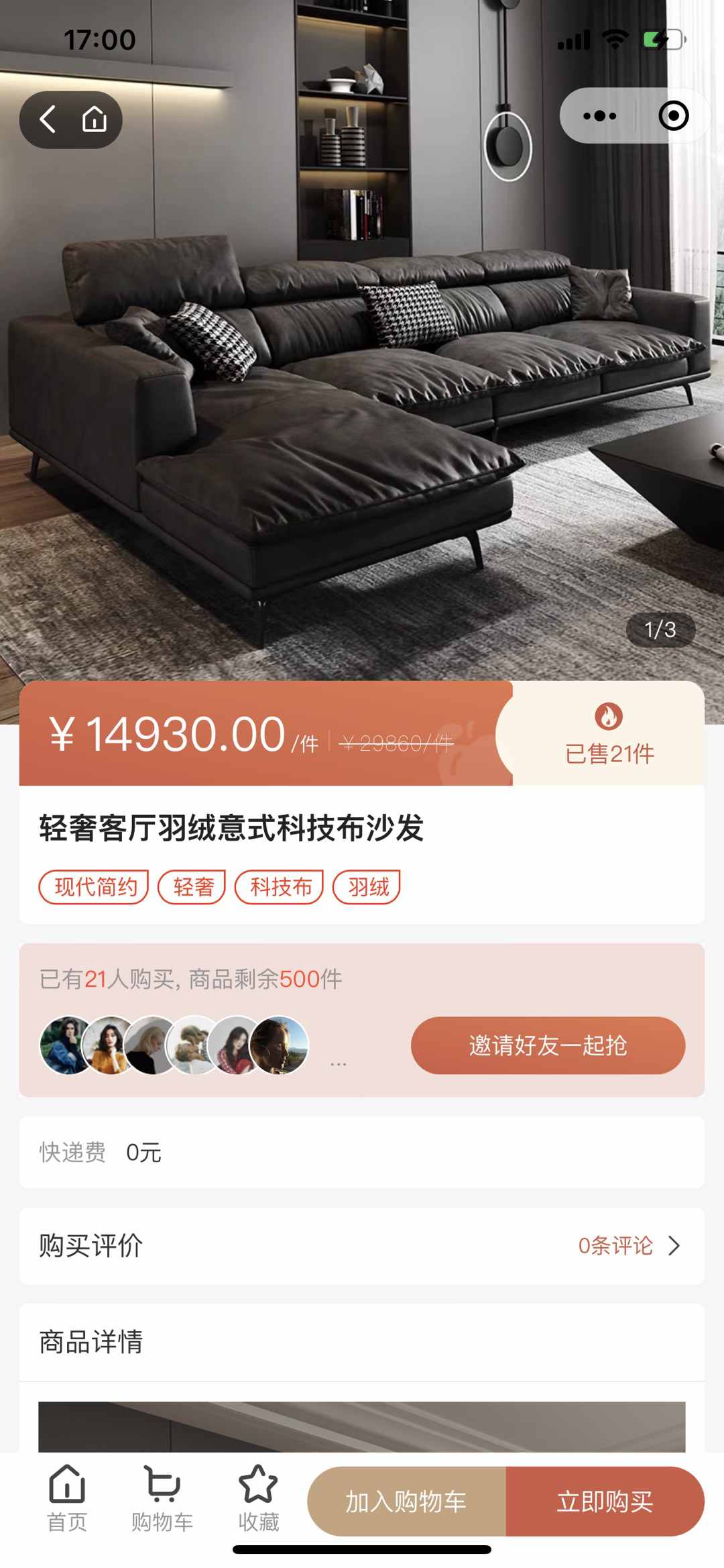 提供家居装修案例、场景搭配、软装教程等内容模块,内置家居团购、满减优惠、套餐组合、新品预售等营销功能,适配家居装修季、节日促销等场景,提升销量。